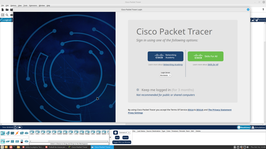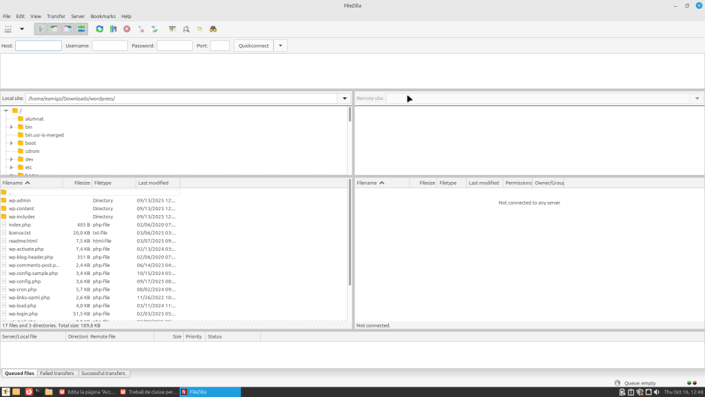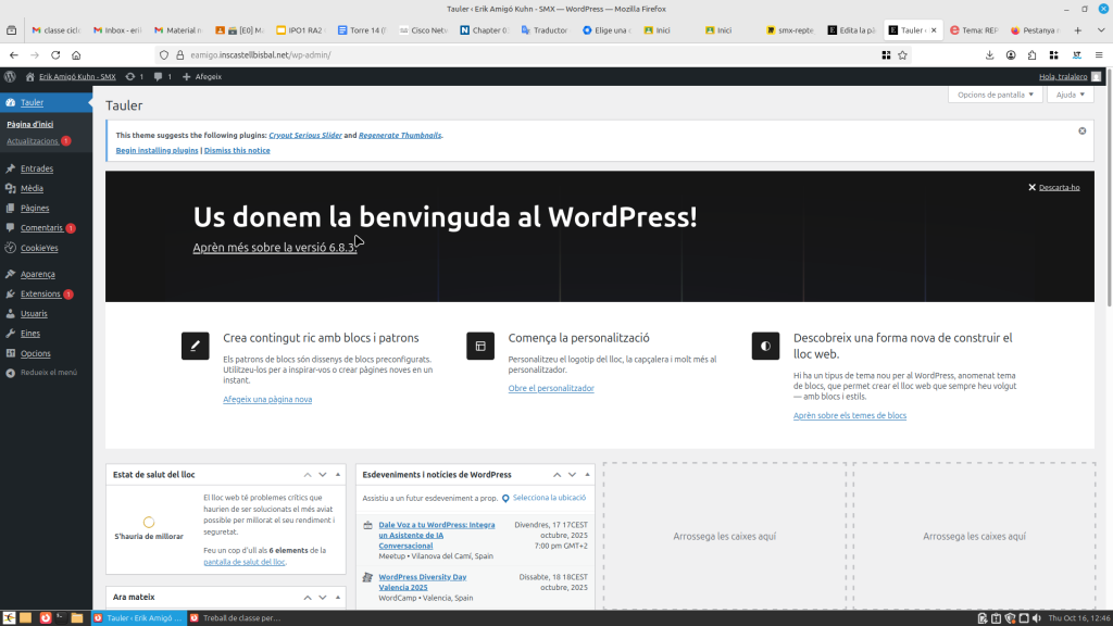 Tinc accés a les següents webs: WordPress, Miro, Python, Visual Studio Code, Packet Tracer, VirtualBox, Filezilla i Vagrant