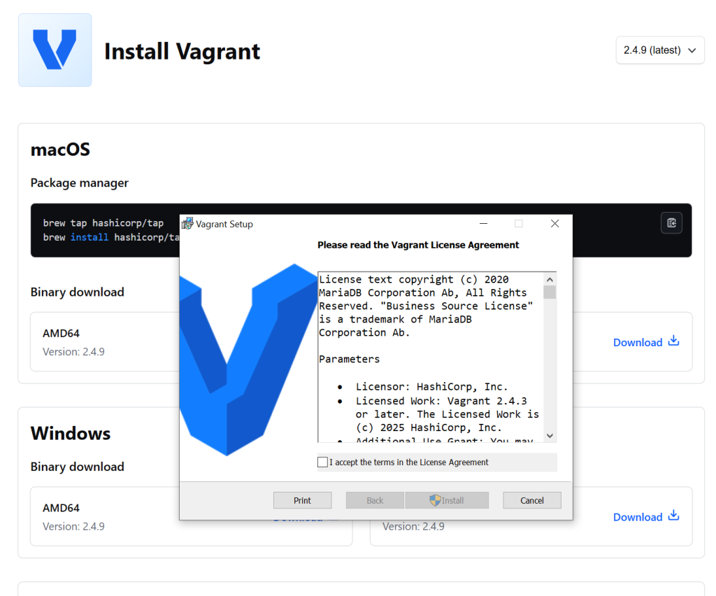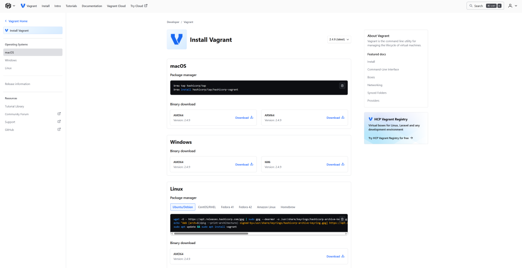 Ens dirigim a la web de Vagrant i seleccionem la versió adequada per al nostre sistema operatiu.