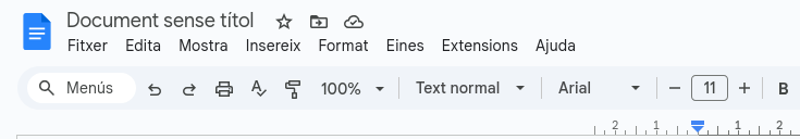 Per fer-ho, primer has d’anar a un document de Google, escriure un text i seleccionar-lo. Quan el text estigui seleccionat, cliquem en “Insereix”.