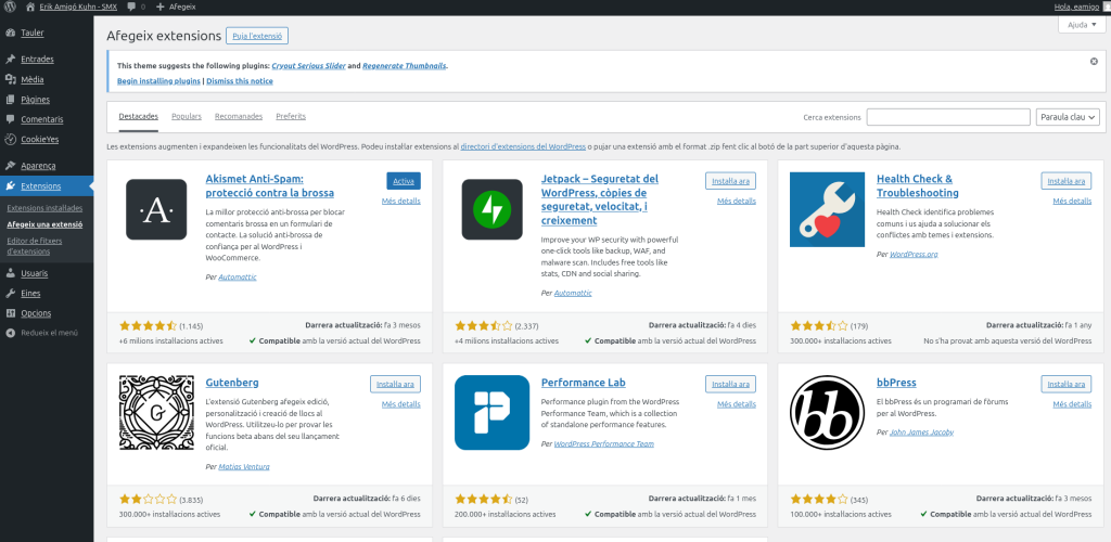 Ara pots buscar el plugin que vulguis i descarregar-lo.