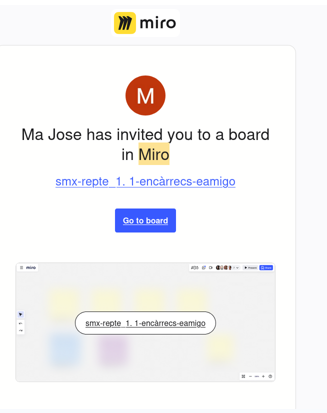 Des de el correu que ens van enviar, he pogut accedir al Miro i he iniciat sessió amb el meu correu corporatiu.