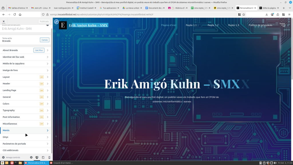 T’has de dirigir al menú de personalització del WordPress i clicar en “Menú”