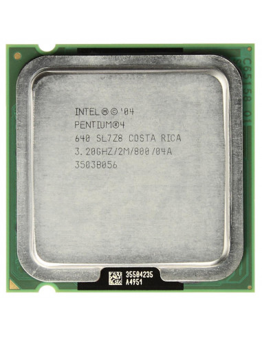 El Intel Pentium 640 SL7Z8 a 3,2 GHz és un processador de doble nucli que actua com a cervell de l’ordinador, executant instruccions de programes i del sistema operatiu. Té una velocitat de 3,2 GHz, suficient per tasques bàsiques com navegar per internet i treballar amb documents, però limitat per jocs i aplicacions modernes.