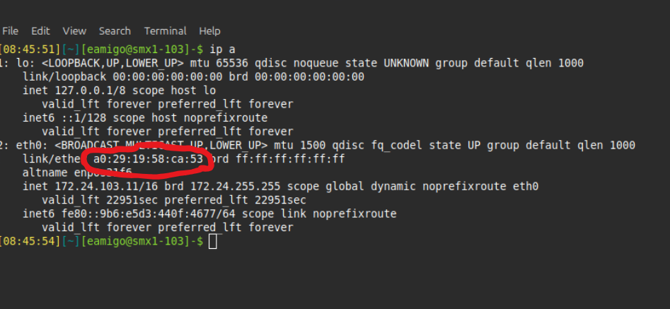 Per obtenir la MAC de la teva màquina, t’has de dirigir a la terminal i executar la comanda ip a i et mostrarà les dades de la interfície de xarxa. La MAC és un posa link/ether