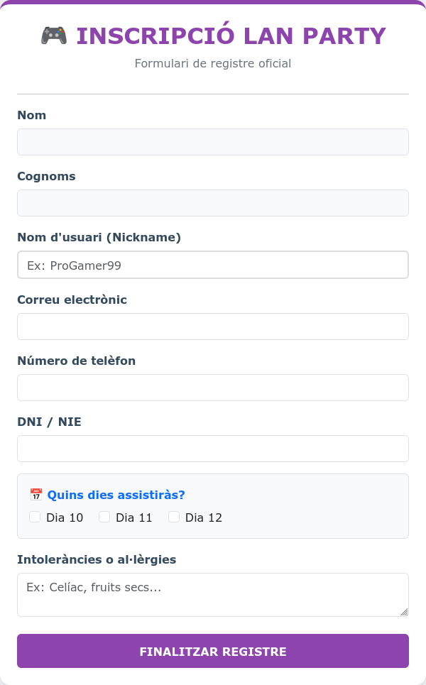 <h2 class="text-center">🎮 INSCRIPCIÓ LAN PARTY</h2>